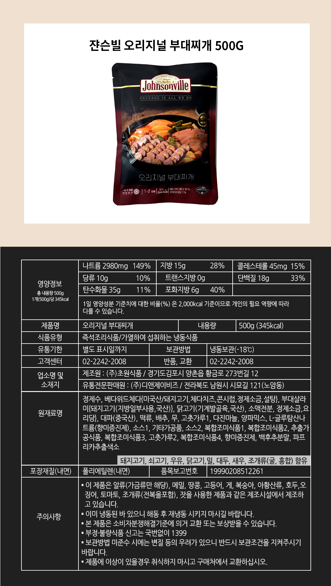 쟌슨빌 뉴 오리지널 부대찌개 500g 1팩
