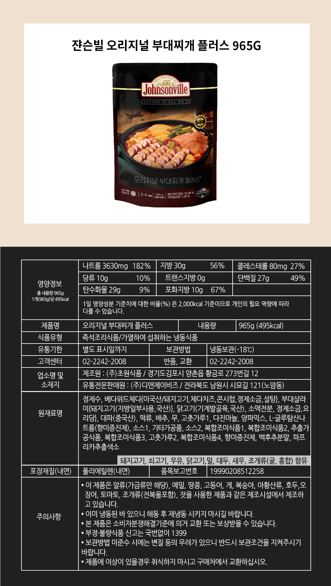 쟌슨빌 오리지널 부대찌개 플러스 965g 4팩